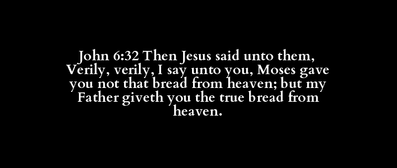 John 6:32 Then Jesus said unto them, Verily, verily, I say unto you, Moses gave you not that bread from heaven; but my Father giveth you the true bread from heaven.