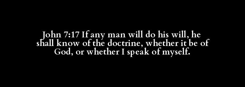 John 7:17 If any man will do his will, he shall know of the doctrine, whether it be of God, or whether I speak of myself.