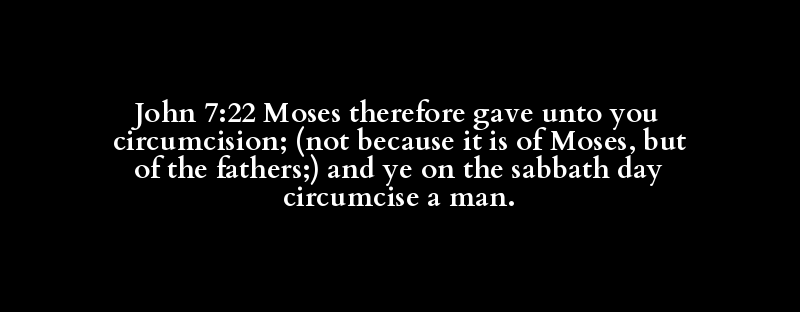 John 7:22 Moses therefore gave unto you circumcision; (not because it is of Moses, but of the fathers;) and ye on the sabbath day circumcise a man.