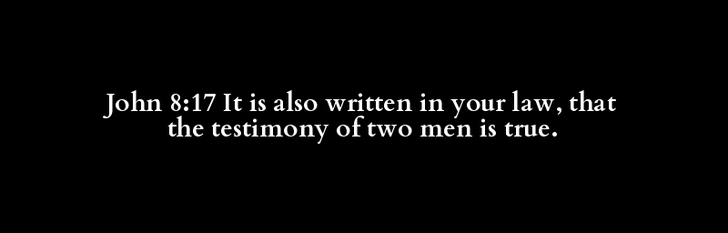 John 8:17 It is also written in your law, that the testimony of two men is true.
