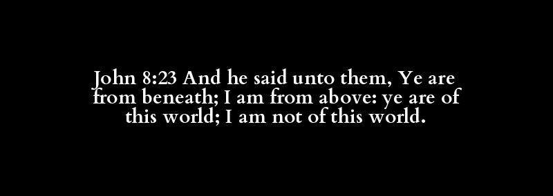 John 8:23 And he said unto them, Ye are from beneath; I am from above: ye are of this world; I am not of this world.