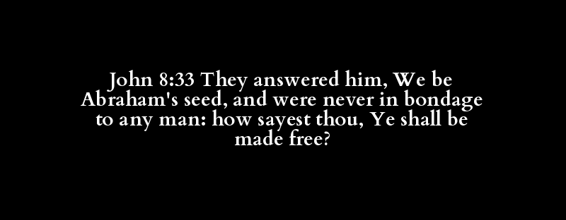 John 8:33 They answered him, We be Abraham's seed, and were never in bondage to any man: how sayest thou, Ye shall be made free?
