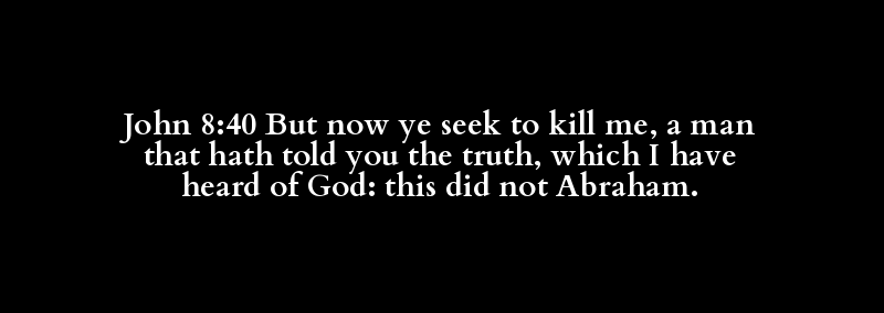 John 8:40 But now ye seek to kill me, a man that hath told you the truth, which I have heard of God: this did not Abraham.