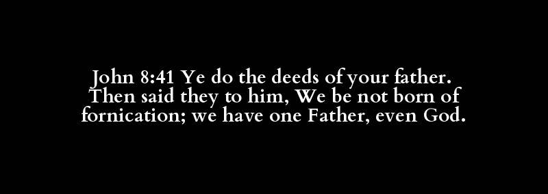 John 8:41 Ye do the deeds of your father. Then said they to him, We be not born of fornication; we have one Father, even God.