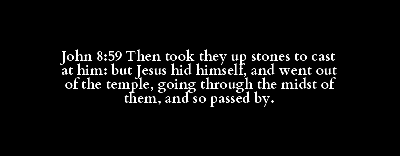 John 8:59 Then took they up stones to cast at him: but Jesus hid himself, and went out of the temple, going through the midst of them, and so passed by.