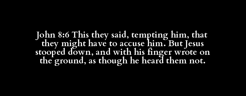 John 8:6 This they said, tempting him, that they might have to accuse him. But Jesus stooped down, and with his finger wrote on the ground, as though he heard them not.