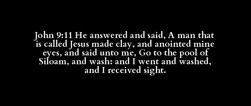 John 9:11 He answered and said, A man that is called Jesus made clay, and anointed mine eyes, and said unto me, Go to the pool of Siloam, and wash: and I went and washed, and I received sight.