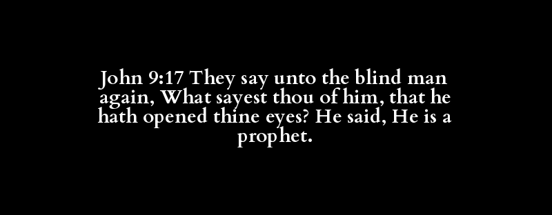 John 9:17 They say unto the blind man again, What sayest thou of him, that he hath opened thine eyes? He said, He is a prophet.
