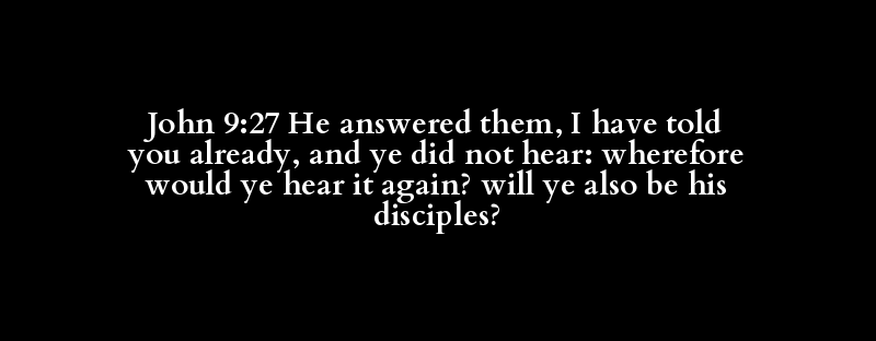 John 9:27 He answered them, I have told you already, and ye did not hear: wherefore would ye hear it again? will ye also be his disciples?