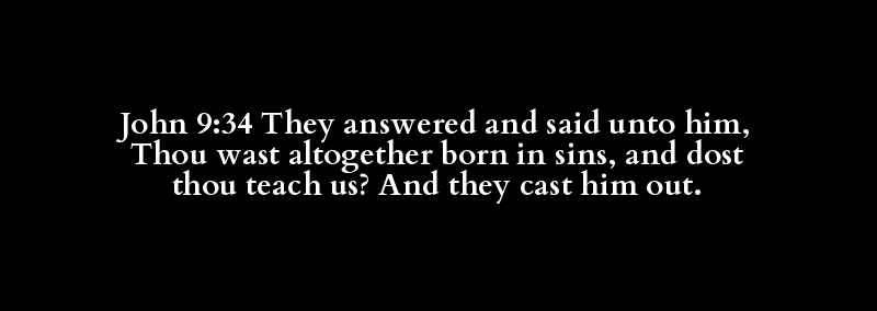 John 9:34 They answered and said unto him, Thou wast altogether born in sins, and dost thou teach us? And they cast him out.