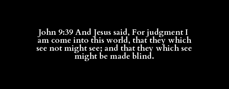 John 9:39 And Jesus said, For judgment I am come into this world, that they which see not might see; and that they which see might be made blind.