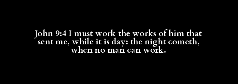 John 9:4 I must work the works of him that sent me, while it is day: the night cometh, when no man can work.