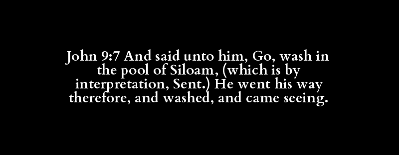 John 9:7 And said unto him, Go, wash in the pool of Siloam, (which is by interpretation, Sent.) He went his way therefore, and washed, and came seeing.
