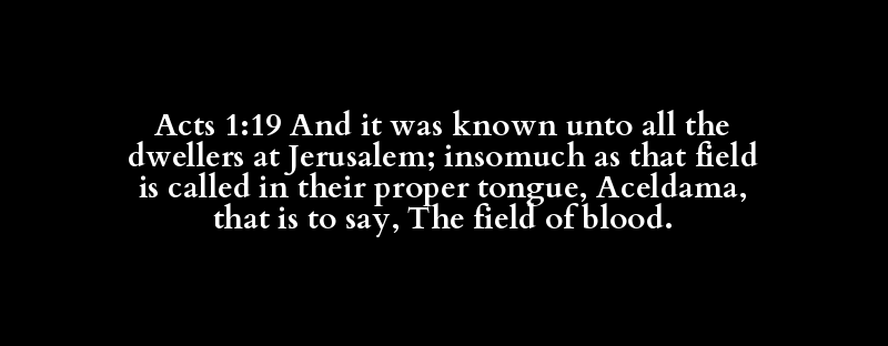 Acts 1:19 And it was known unto all the dwellers at Jerusalem; insomuch as that field is called in their proper tongue, Aceldama, that is to say, The field of blood.