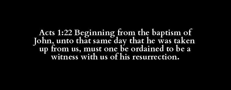 Acts 1:22 Beginning from the baptism of John, unto that same day that he was taken up from us, must one be ordained to be a witness with us of his resurrection.
