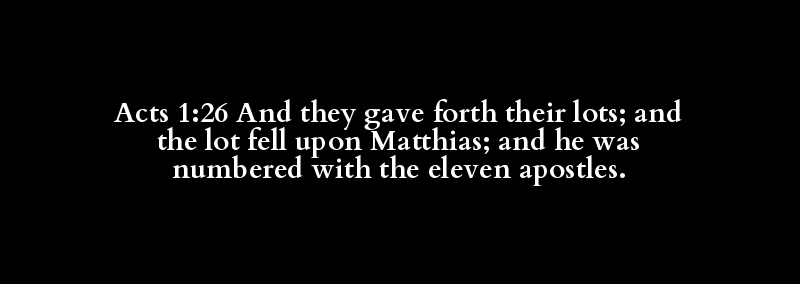Acts 1:26 And they gave forth their lots; and the lot fell upon Matthias; and he was numbered with the eleven apostles.
