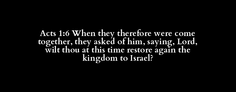 Acts 1:6 When they therefore were come together, they asked of him, saying, Lord, wilt thou at this time restore again the kingdom to Israel?