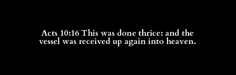 Acts 10:16 This was done thrice: and the vessel was received up again into heaven.