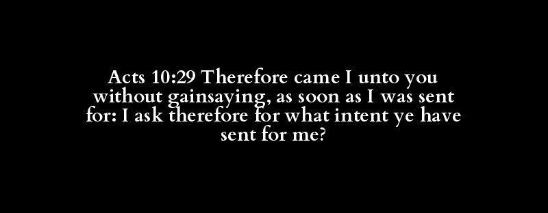 Acts 10:29 Therefore came I unto you without gainsaying, as soon as I was sent for: I ask therefore for what intent ye have sent for me?