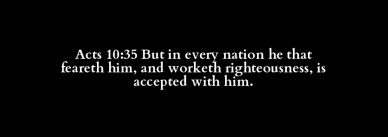 Acts 10:35 But in every nation he that feareth him, and worketh righteousness, is accepted with him.