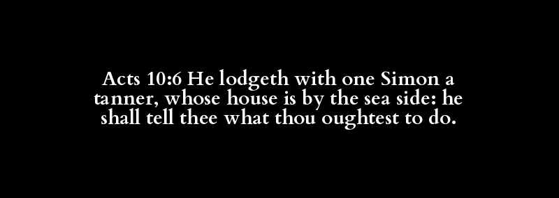 Acts 10:6 He lodgeth with one Simon a tanner, whose house is by the sea side: he shall tell thee what thou oughtest to do.