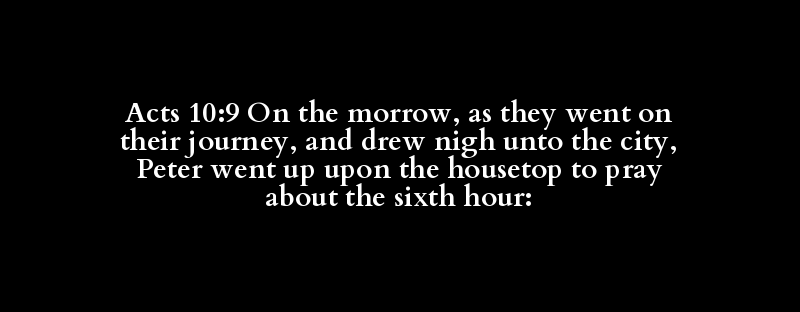 Acts 10:9 On the morrow, as they went on their journey, and drew nigh unto the city, Peter went up upon the housetop to pray about the sixth hour: