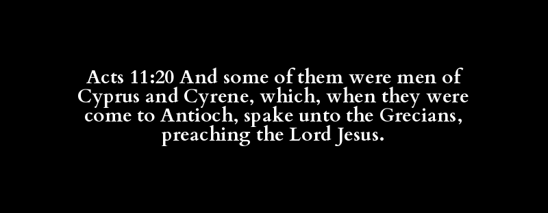 Acts 11:20 And some of them were men of Cyprus and Cyrene, which, when they were come to Antioch, spake unto the Grecians, preaching the Lord Jesus.