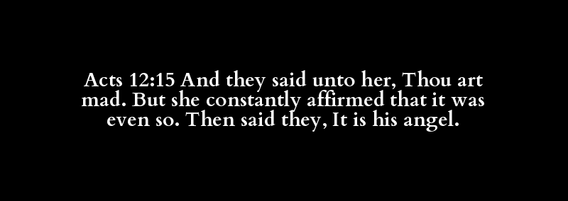 Acts 12:15 And they said unto her, Thou art mad. But she constantly affirmed that it was even so. Then said they, It is his angel.