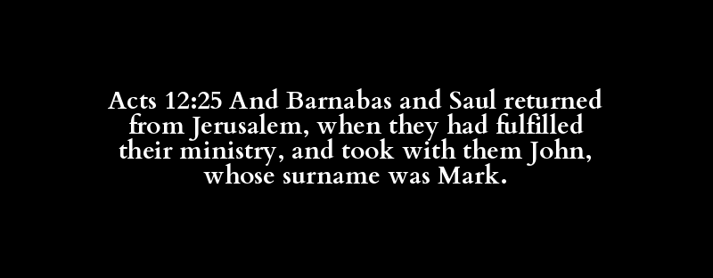 Acts 12:25 And Barnabas and Saul returned from Jerusalem, when they had fulfilled their ministry, and took with them John, whose surname was Mark.