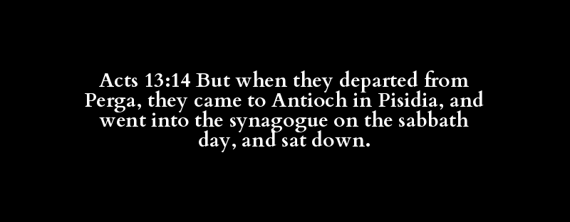 Acts 13:14 But when they departed from Perga, they came to Antioch in Pisidia, and went into the synagogue on the sabbath day, and sat down.