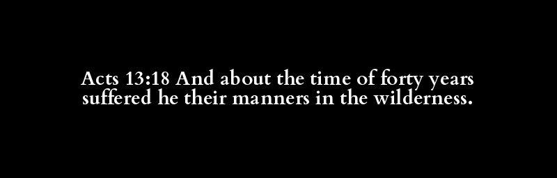 Acts 13:18 And about the time of forty years suffered he their manners in the wilderness.