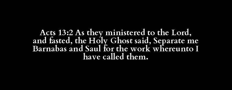 Acts 13:2 As they ministered to the Lord, and fasted, the Holy Ghost said, Separate me Barnabas and Saul for the work whereunto I have called them.