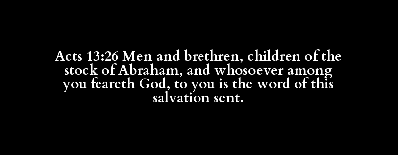 Acts 13:26 Men and brethren, children of the stock of Abraham, and whosoever among you feareth God, to you is the word of this salvation sent.