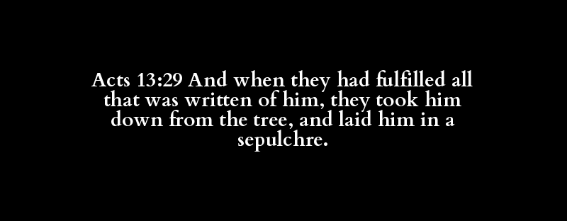 Acts 13:29 And when they had fulfilled all that was written of him, they took him down from the tree, and laid him in a sepulchre.