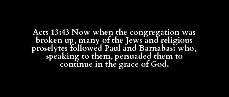 | [de] | [sunagoge] | [luo] | [polus] | [Ioudaios] | [kai] | [sebomai] | [proselutos] | [akoloutheo] | [Paulos] | [kai] | [Barnabas] | [hostis] | [proslaleo] | [autos] | [peitho] | [autos] | [epimeno] | [charis] | [theos] |