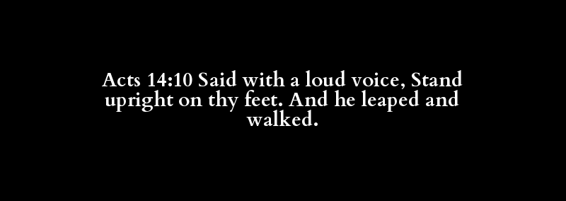 Acts 14:10 Said with a loud voice, Stand upright on thy feet. And he leaped and walked.