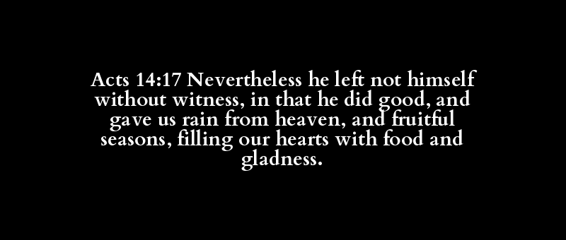 Acts 14:17 Nevertheless he left not himself without witness, in that he did good, and gave us rain from heaven, and fruitful seasons, filling our hearts with food and gladness.