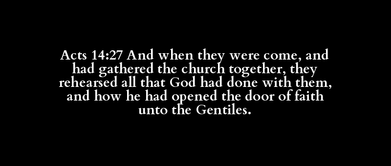 Acts 14:27 And when they were come, and had gathered the church together, they rehearsed all that God had done with them, and how he had opened the door of faith unto the Gentiles.