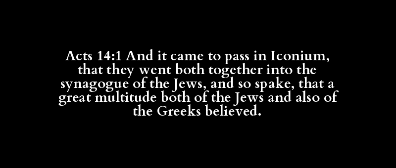 Acts 14:1 And it came to pass in Iconium, that they went both together into the synagogue of the Jews, and so spake, that a great multitude both of the Jews and also of the Greeks believed.