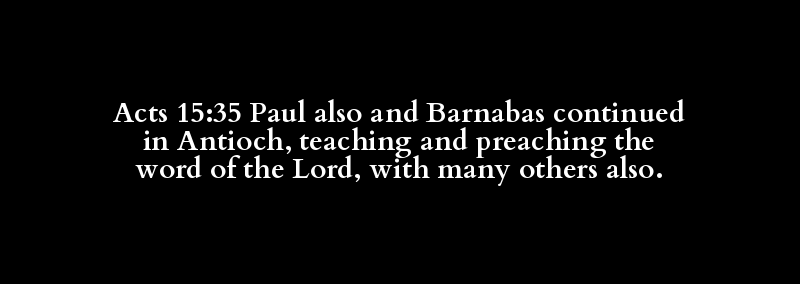 Acts 15:35 Paul also and Barnabas continued in Antioch, teaching and preaching the word of the Lord, with many others also.