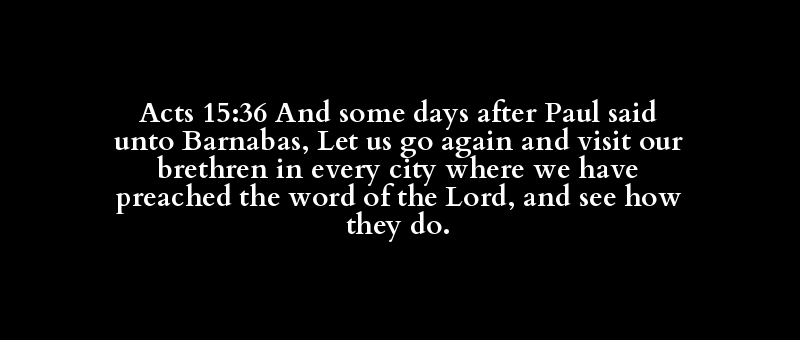 Acts 15:36 And some days after Paul said unto Barnabas, Let us go again and visit our brethren in every city where we have preached the word of the Lord, and see how they do.