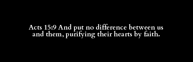 Acts 15:9 And put no difference between us and them, purifying their hearts by faith.