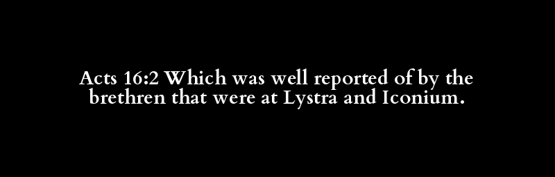 Acts 16:2 Which was well reported of by the brethren that were at Lystra and Iconium.