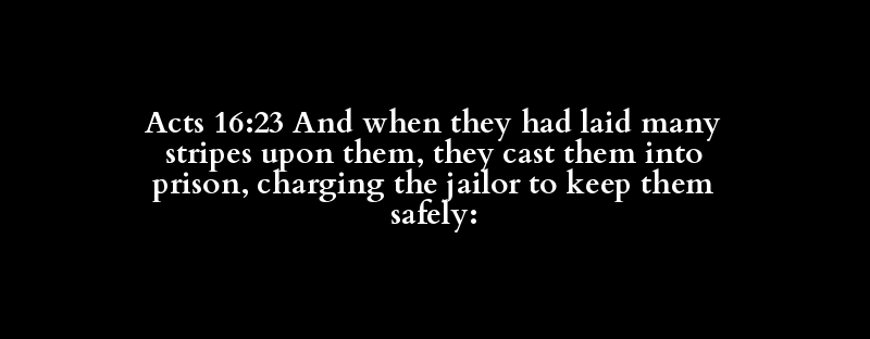 Acts 16:23 And when they had laid many stripes upon them, they cast them into prison, charging the jailor to keep them safely: