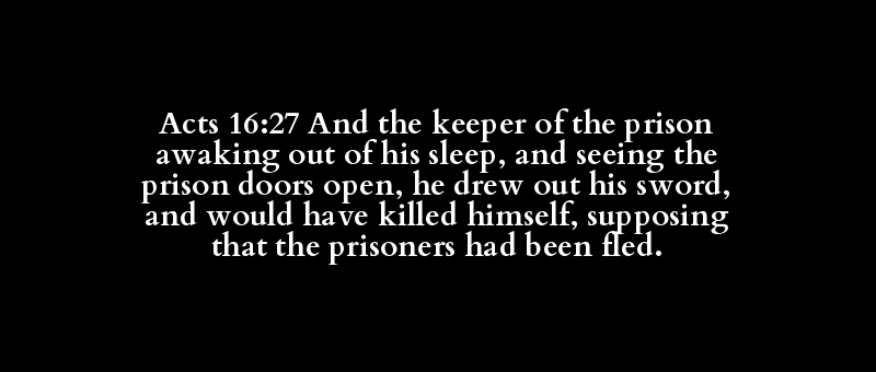 Acts 16:27 And the keeper of the prison awaking out of his sleep, and seeing the prison doors open, he drew out his sword, and would have killed himself, supposing that the prisoners had been fled.