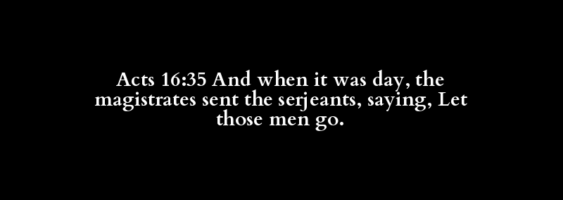 Acts 16:35 And when it was day, the magistrates sent the serjeants, saying, Let those men go.