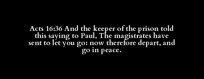 Acts 16:36 And the keeper of the prison told this saying to Paul, The magistrates have sent to let you go: now therefore depart, and go in peace.