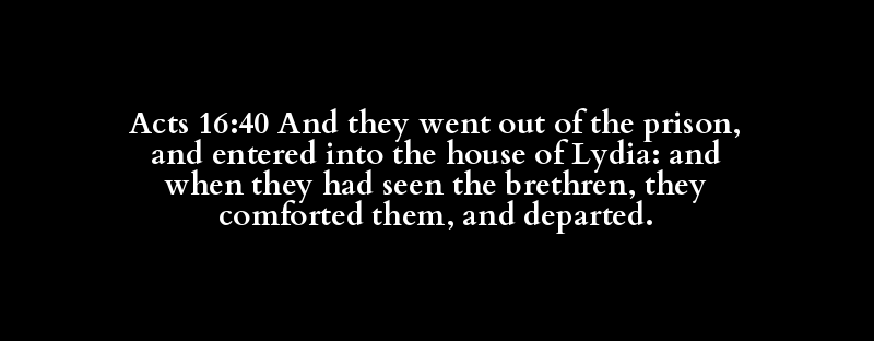 Acts 16:40 And they went out of the prison, and entered into the house of Lydia: and when they had seen the brethren, they comforted them, and departed.