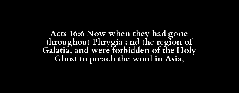 Acts 16:6 Now when they had gone throughout Phrygia and the region of Galatia, and were forbidden of the Holy Ghost to preach the word in Asia,