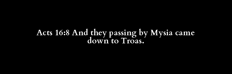 Acts 16:8 And they passing by Mysia came down to Troas.